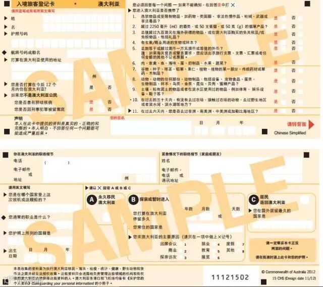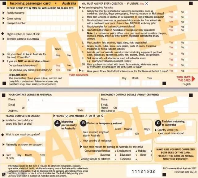 勾选携带物品时一定要小心!澳大利亚对携带物品规定严格,所以第一次入境最好不要带食物。免税香烟规定只能带25支,如果携带10,000澳元以上要记得申报。