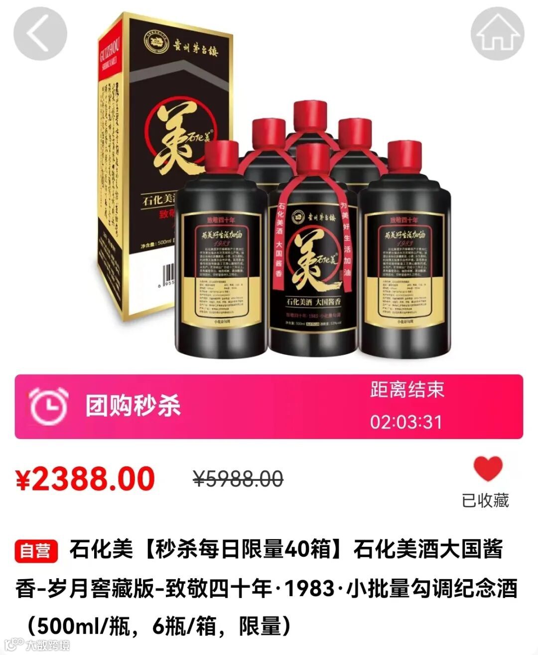 4月1日-7月12日,每天40箱,特惠秒杀100天!致敬四十年·1983·小批量勾调,“石化美”酒大国酱香岁月窖藏,为美好生活加油!赤水河谷出佳酿,茅台古镇石化美,茅台镇7.5平方公里核心产区,眼神的交流,握手的温度,分享正宗酱香的味道。