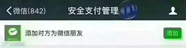 但仔细一看就发现破绽,所谓的“安全支付管理”账号发送的消息,显示其可以添加此账号为好友。而微信服务的各类公众号,只能关注,不能添加好友。