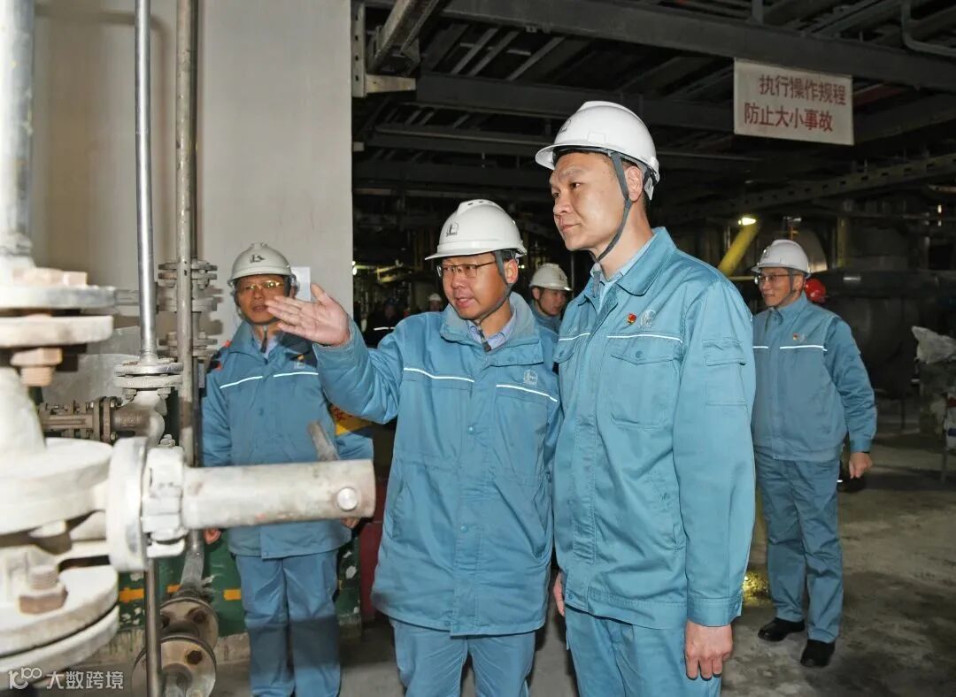 在热媒区,刘楠了解了热媒系统正在进行检漏、试压等工作,对检修取得的进展给予肯定,要求合纤三部严谨细致地组织好开车前的调试以及开车条件确认等工作,确保检修后一次开车成功。