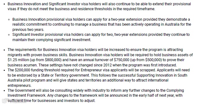 商业创新和重大投资者签证持有人也将继续可以延期他们的临时签证,如果他们满足不了申请永居的要求
