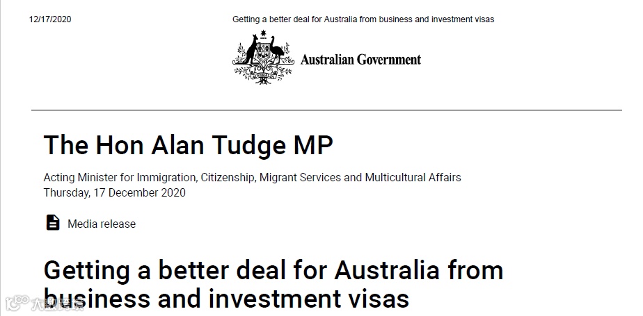 据Financial Review报道,澳洲代理移民部长表示澳洲投资移民一直处于供不应求状态,加上COVID19需要恢复澳洲经济,2021年7月将对澳洲投资移民进行改革。