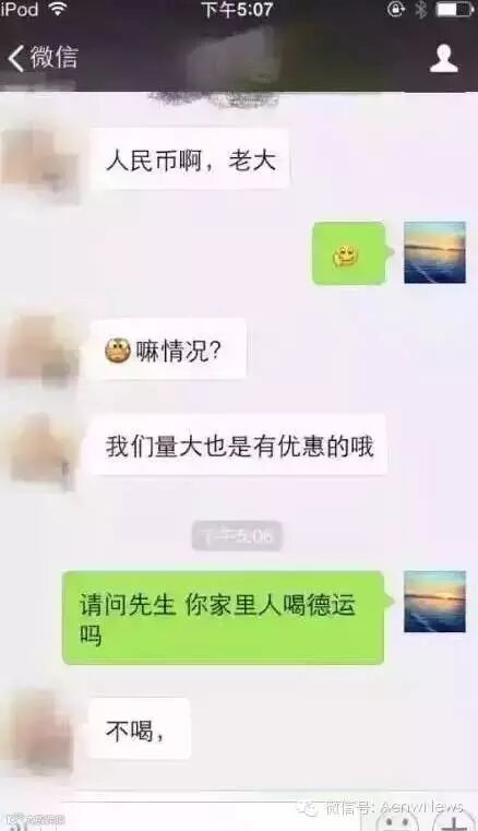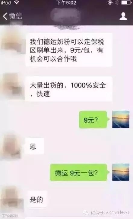 当对方回答是人民币时,这位网友已经可以察觉出这就是假奶粉的供应商了!