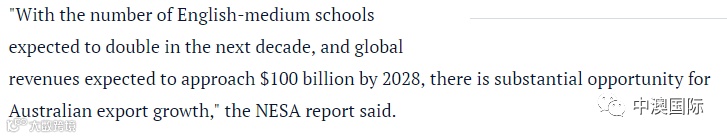 NESA报告称,“随着英国中学的数量预计在未来十年翻一番,预计到2028年全球收入将接近1000亿美元,澳大利亚出口增长的机会很大。”