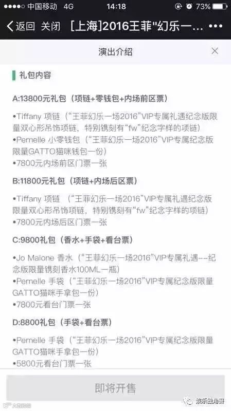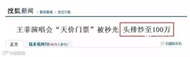 王菲门票的价格为7800元,5800元,最低都要1800元