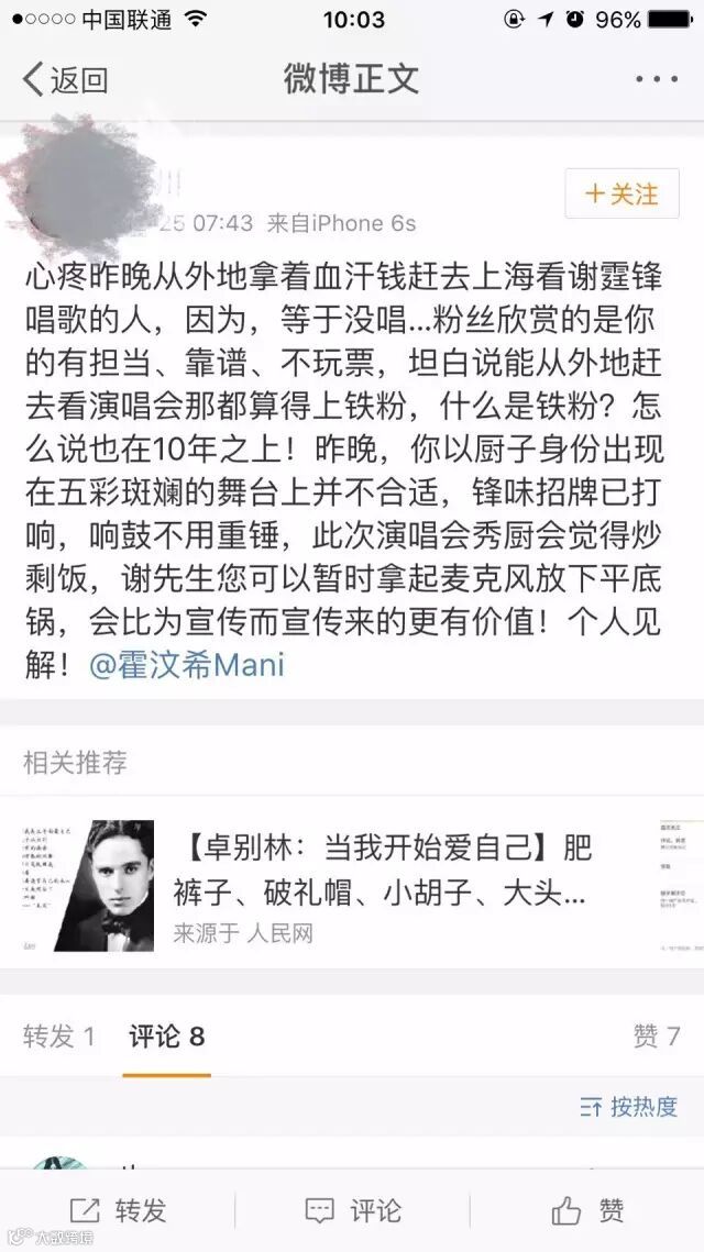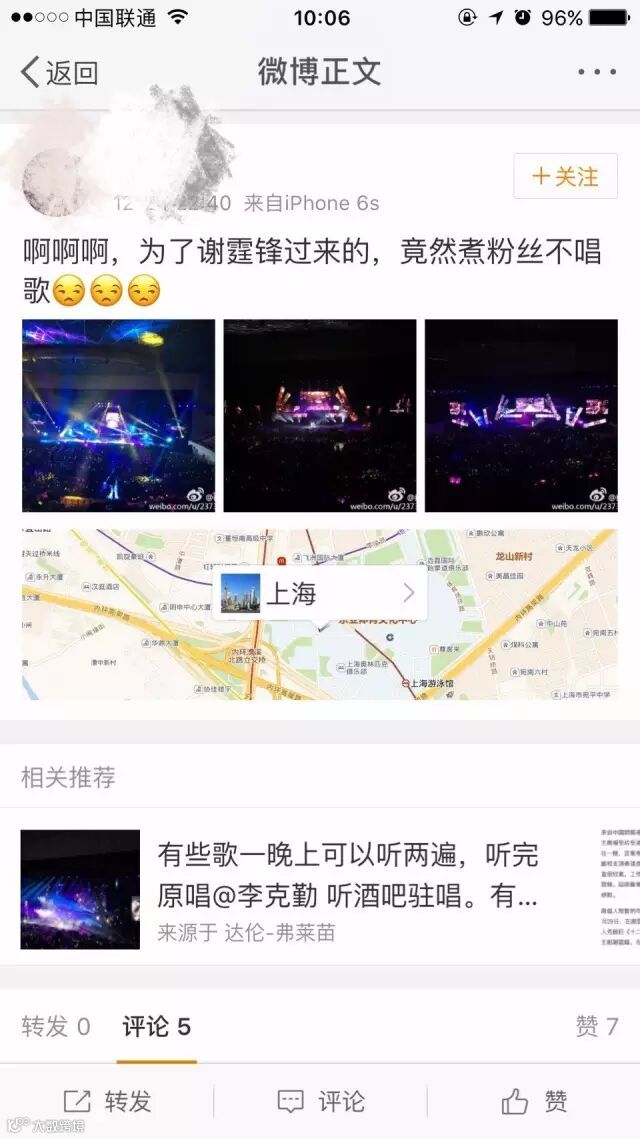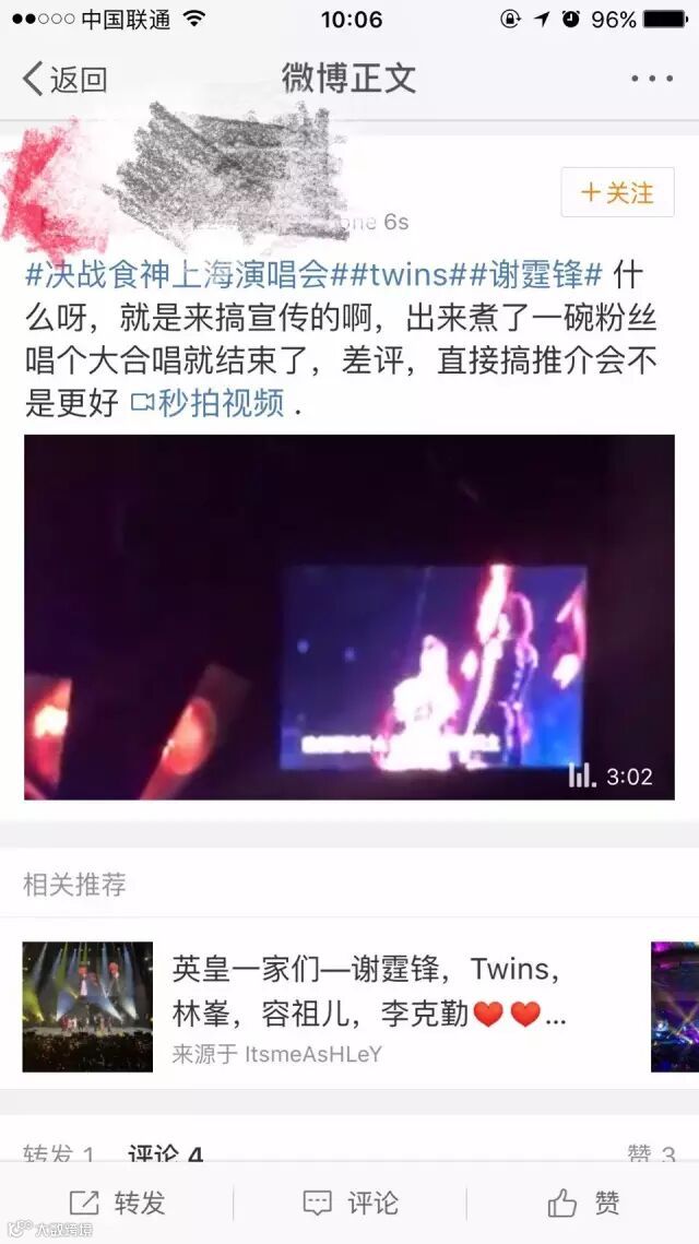 指说他在3天前上海的“英皇决战食神巨星演唱会”上