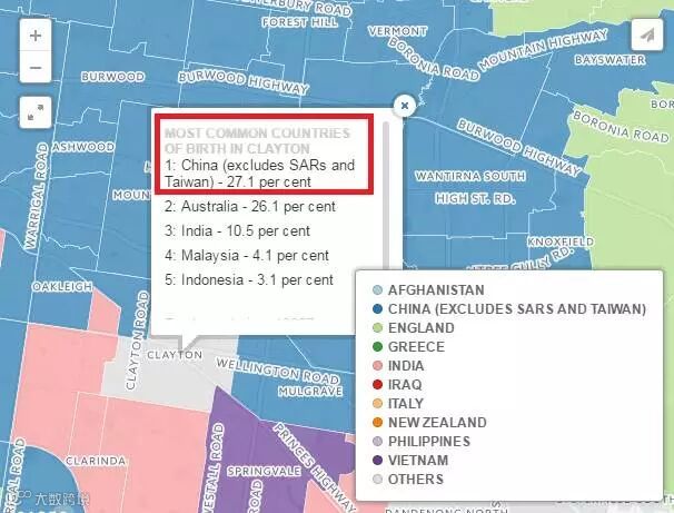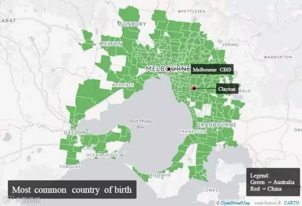 根据澳洲统计局的人口普查数据,下图为墨尔本首份各区同胞地图:
