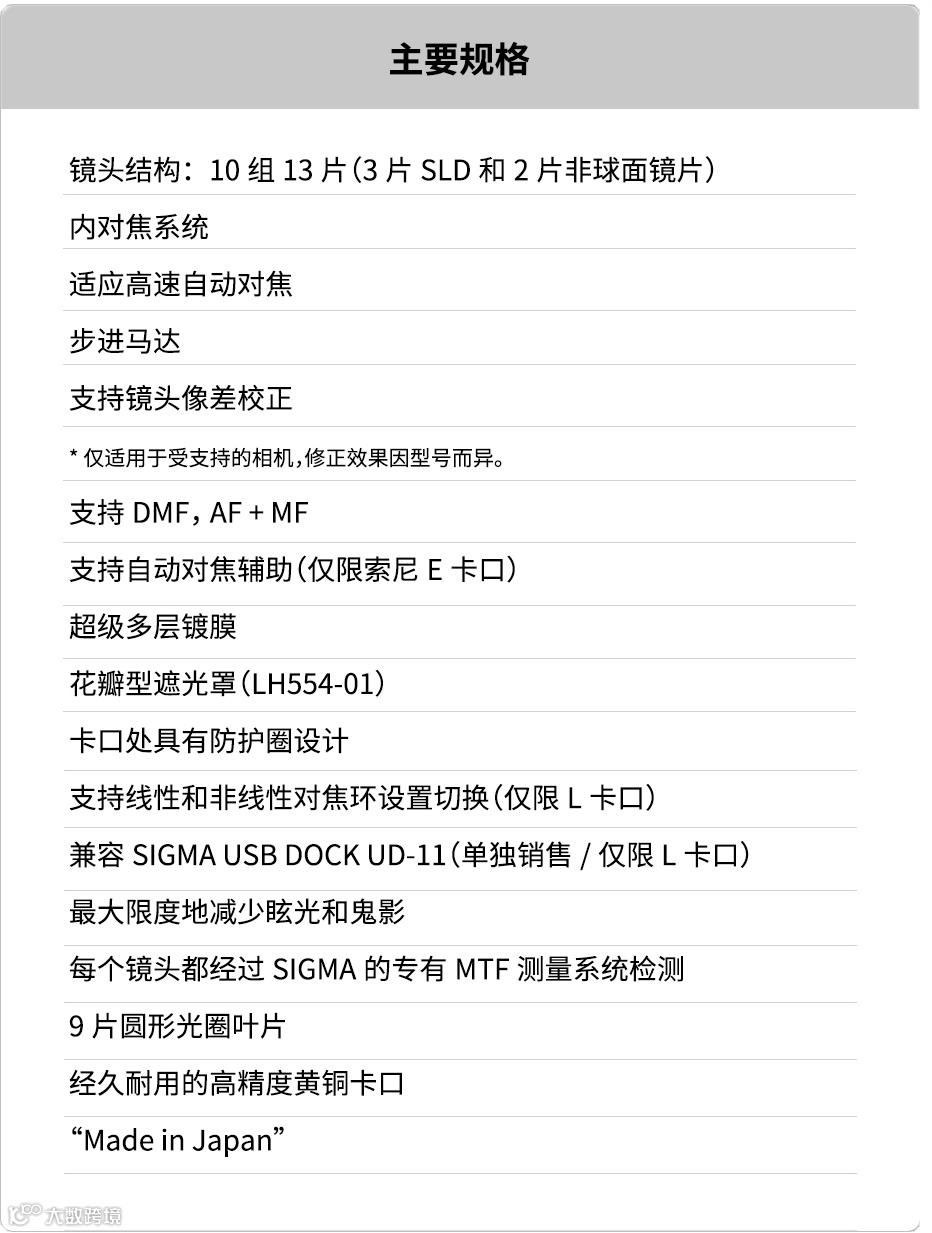 最新的光学设计以及SIGMA会津工厂的加工生产技术,使得镜身尺寸和重量都得到了优化,实现了集高光学性能和小尺寸于一身的理想。