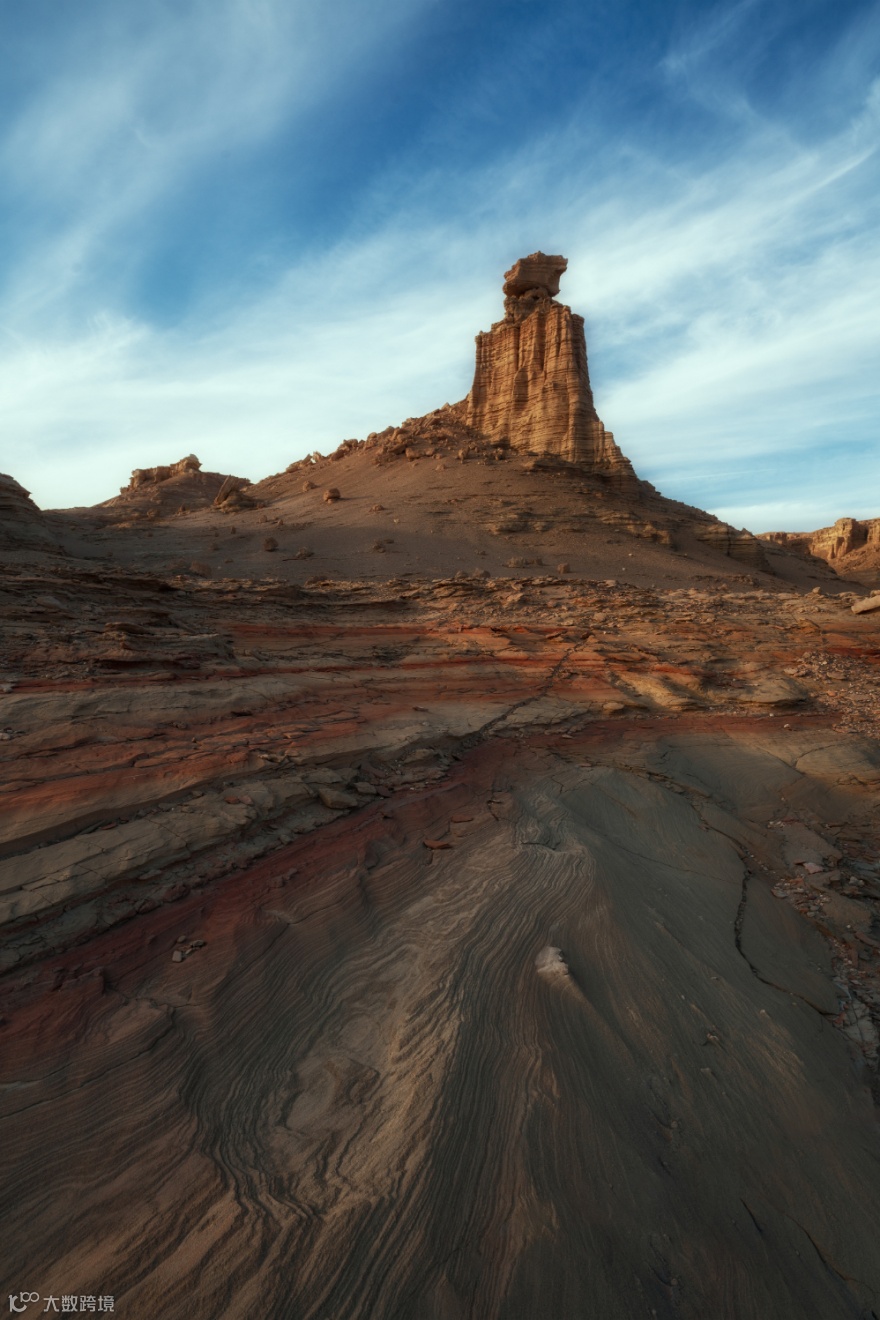 “这次前往罗布泊大海道地区拍摄,因为要背露营装备,轻量化的器材是我的首选。这支17mm F4 DG DN镜头225g的重量完全可以放入口袋随身携带,可以说毫无负担。17mm的超广角,能够很轻松地将高大的雅丹景观收入画面,带给观众更夸张的视角震撼。