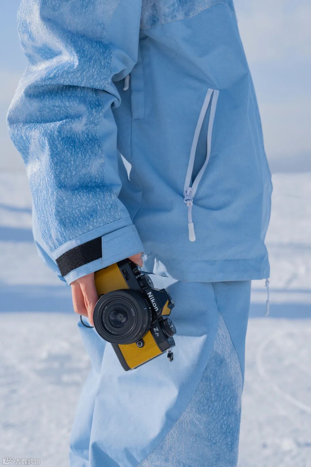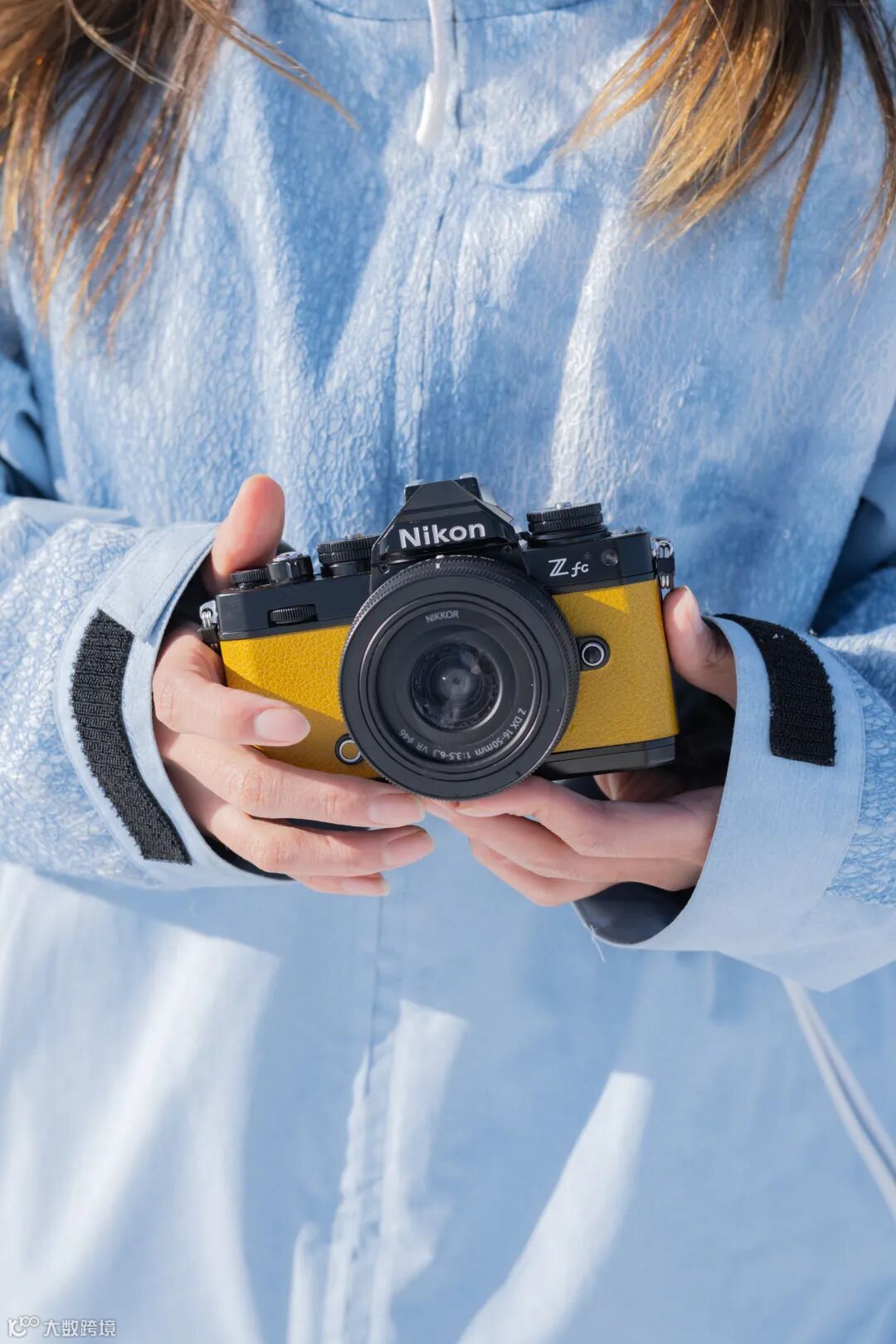 尼康Z fc是一款非常适合街拍的相机,在搭配多种场景时,都能成为摄影师理想的拍摄伙伴。其自身拥有的复古时尚气息甚至还能作为出镜的道具来丰富人物的不同气质。将芥末黄的黑色版尼康Z fc拿在手中,与天蓝色滑雪服的形成的撞色对比下,为画面增添鲜明的张力。同时,小巧的机身镜头很适合户外拍摄,可以轻松放在雪服的口袋中,不会影响到正常的滑行。