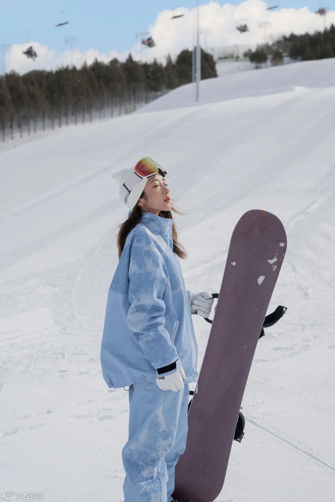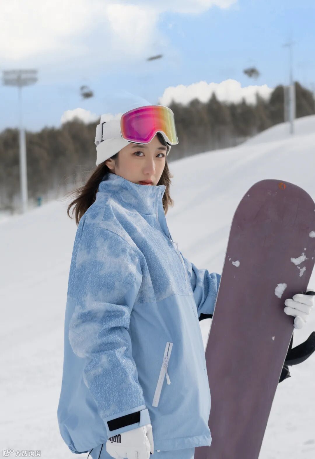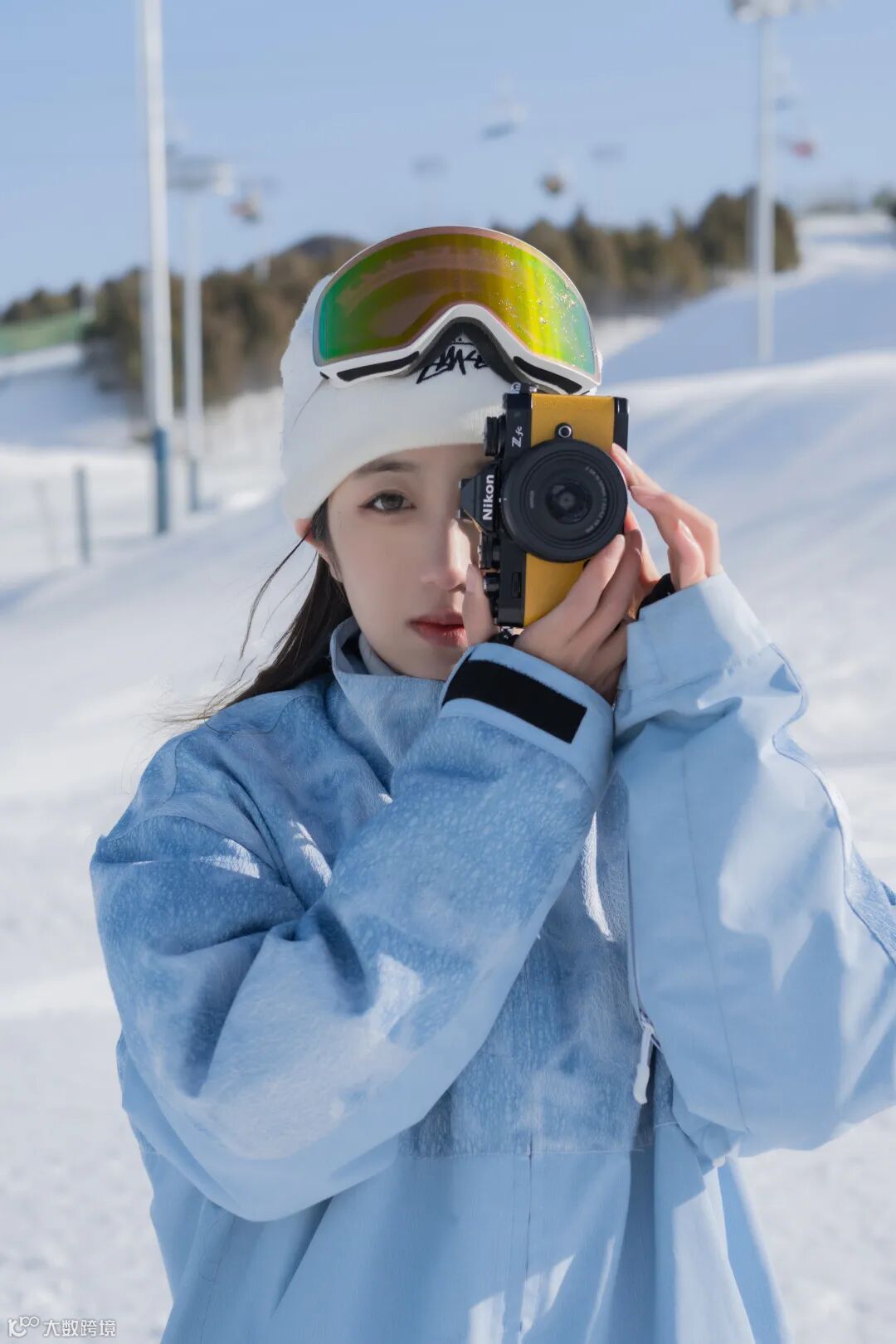在雪道拍摄,应尽可能地避开杂乱的场景和人群的干扰,但也要适当地保留远景环境,通过画面景深的虚实对比,让画面更为简洁,从而强调被摄人物。这时,可以看到使用的尼克尔 Z 40mm f/2镜头,通过较大的光圈,控制出合理的景深范围,同时大而柔和的虚化效果,还烘托出环境的氛围感,使照片主体锐利,焦外虚化自然。