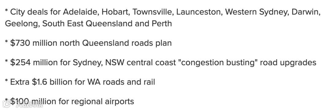 当然,澳洲各州也都“雨露均沾”,都将在今年得到一定的拨款用于交通建设。