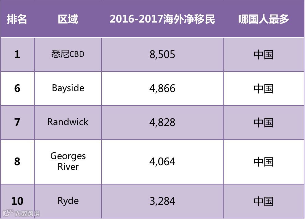 新州和维州可以说一直以来都是国内移澳的两大选择,如下图所示,新州前十个移民热区里,一半是国人最爱区!悉尼甚至有个区Ashfield被称为“小上海”。