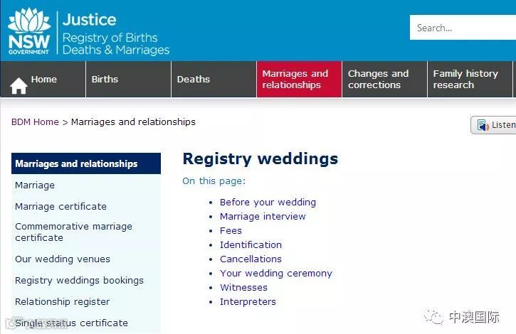当然,在澳洲注册结婚还可以去澳州政府的出生、婚姻及死亡登记处(Registry of Births, Deaths and Marriages)。