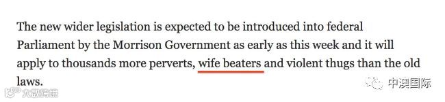当时就说了,新法会由莫里森政府引入联邦议会,并将适用于数千名变态者,暴力暴徒和打老婆的人。