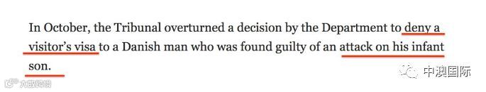 去年10月,丹麦一名男子想来澳洲玩,但旅游签证递上之后却迟迟没有下签,跑去问了之后才发现自己被拒签了,而原因是曾经因为“用手打儿子的头,还踢了儿子一脚”