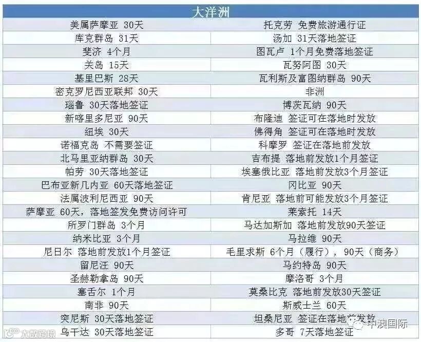 183个澳洲免签国家大名单