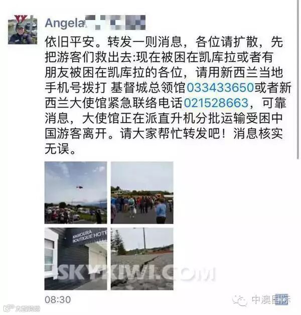 地震发生时,有超过100名中国游客被困于灾情较重的旅游胜地凯库拉小镇,