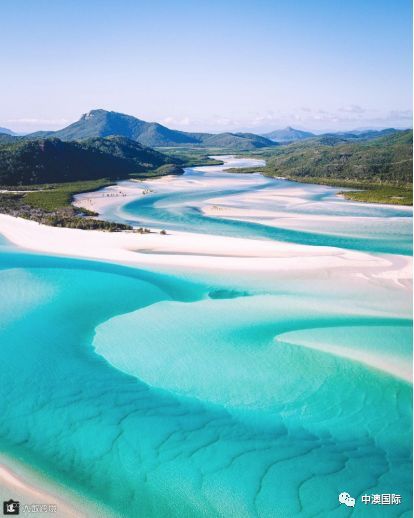 漫步在白沙与湛蓝的海水相交而形成的半月形海湾,