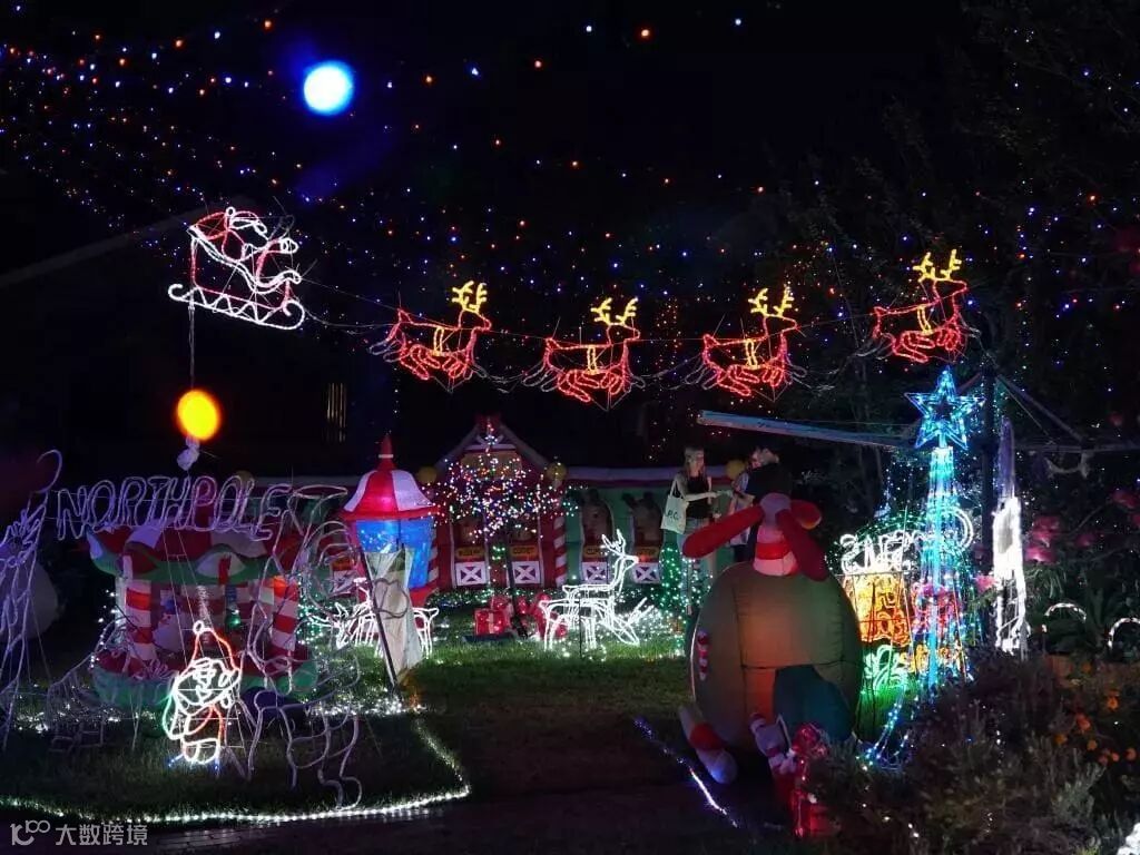 可以自驾或步行进入房子前面的草坪,草坪内装满了灯光,还有一些灯火通明的独立房屋也是拍照发朋友圈的极佳选择。 由于游客众多,这条路上还会有很多冰淇淋车,烤肠等小食。