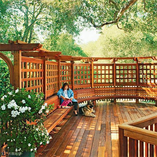 木藤架是一个完美的装饰,可以添加到任何一个户外木平台设计中,并相互组合,元素共性相呼应。