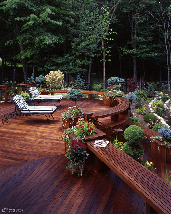 花园露台甲板设计创造的不仅仅是一种感觉,尽可能的使用木板创造大自然的氛围。