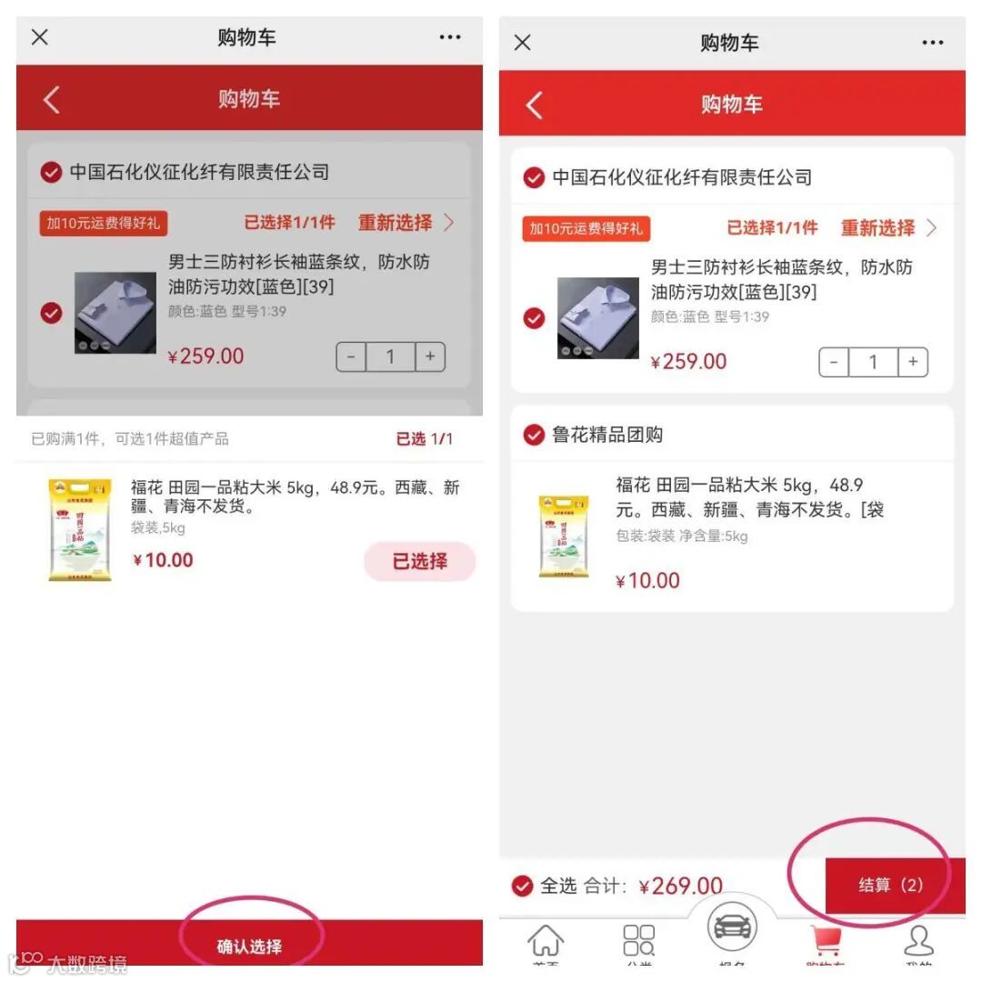 比如您在“加10元运费得好礼”活动专区选择购买仪征化纤衬衫操作步骤如下: