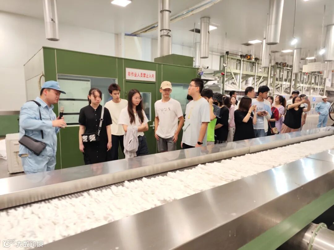 同学们看着飞转的机器和像棉花一样的产品源源不断地流畅而出,抚摸着石油变棉花的化纤产品,在感受到了国家级绿色工厂魅力的同时,更加了解了上个世纪八十年代仪化在缓解国家粮棉争地矛盾中做出过的历史性贡献。
