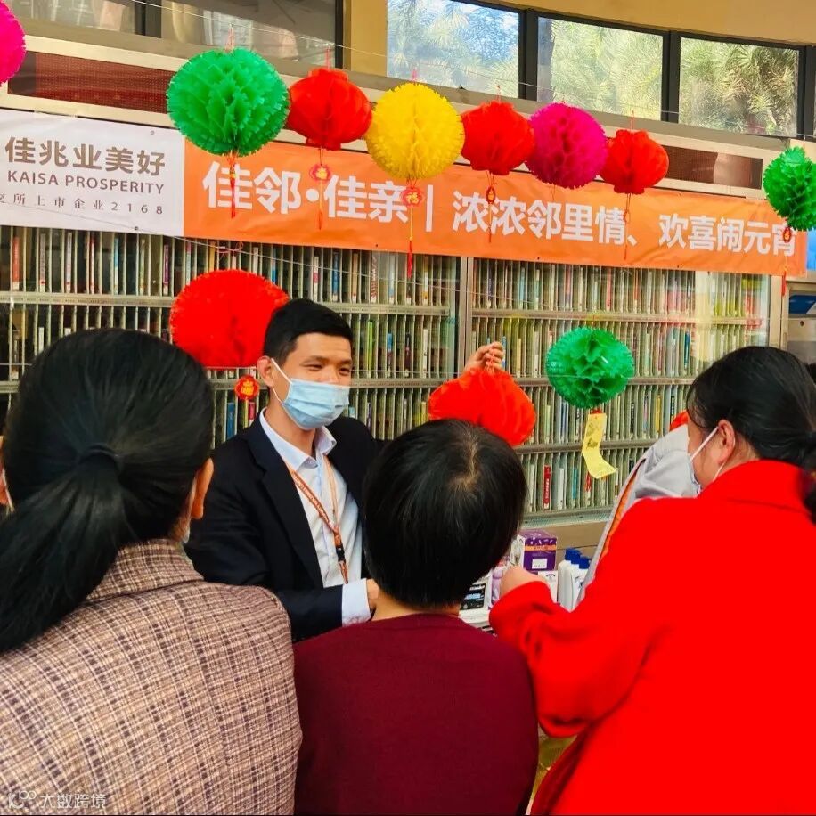 小区项目联合社区工作站、教育机构举行小型的舞龙游园,用气球制作的龙看起来简单却又别出心裁,为节日增添一番乐趣。