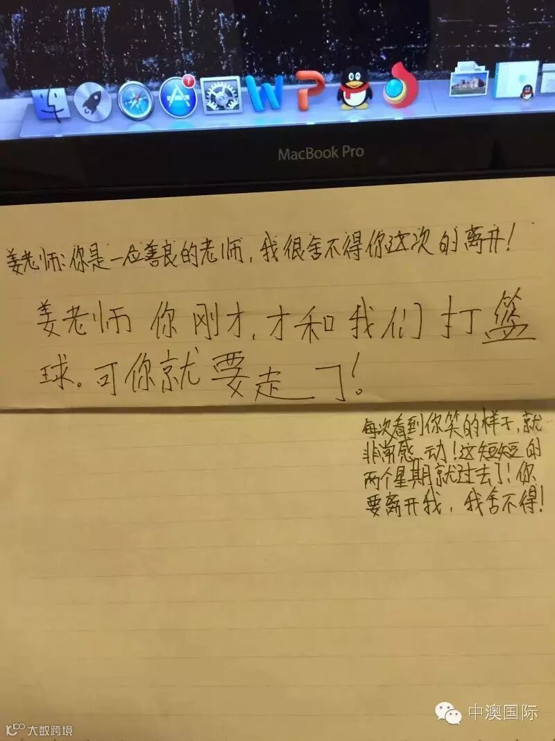 第二次是上最后一个晚自习时,我们买了一些零食给孩子们,大家都吃的很开心,班里唯有一个男孩子趴在桌子上,他平时是有些调皮的孩子,常常和我一起打篮球,因为我们一起打篮球错过了食堂的吃饭时间,所以他没有吃饭,但他也没有吃我们给的零食,当我注意到他时,我过去送给他一个面包,便想和他说话,后来他终于忍不住流泪了,我没有想到平时这样捣乱的孩子会因为我们快离开哭,我在众目睽睽之前安慰他,强忍着自己,但当我回宿舍看到他给我写的纸条时再也忍不住了,简单的话语却温暖到我流泪。