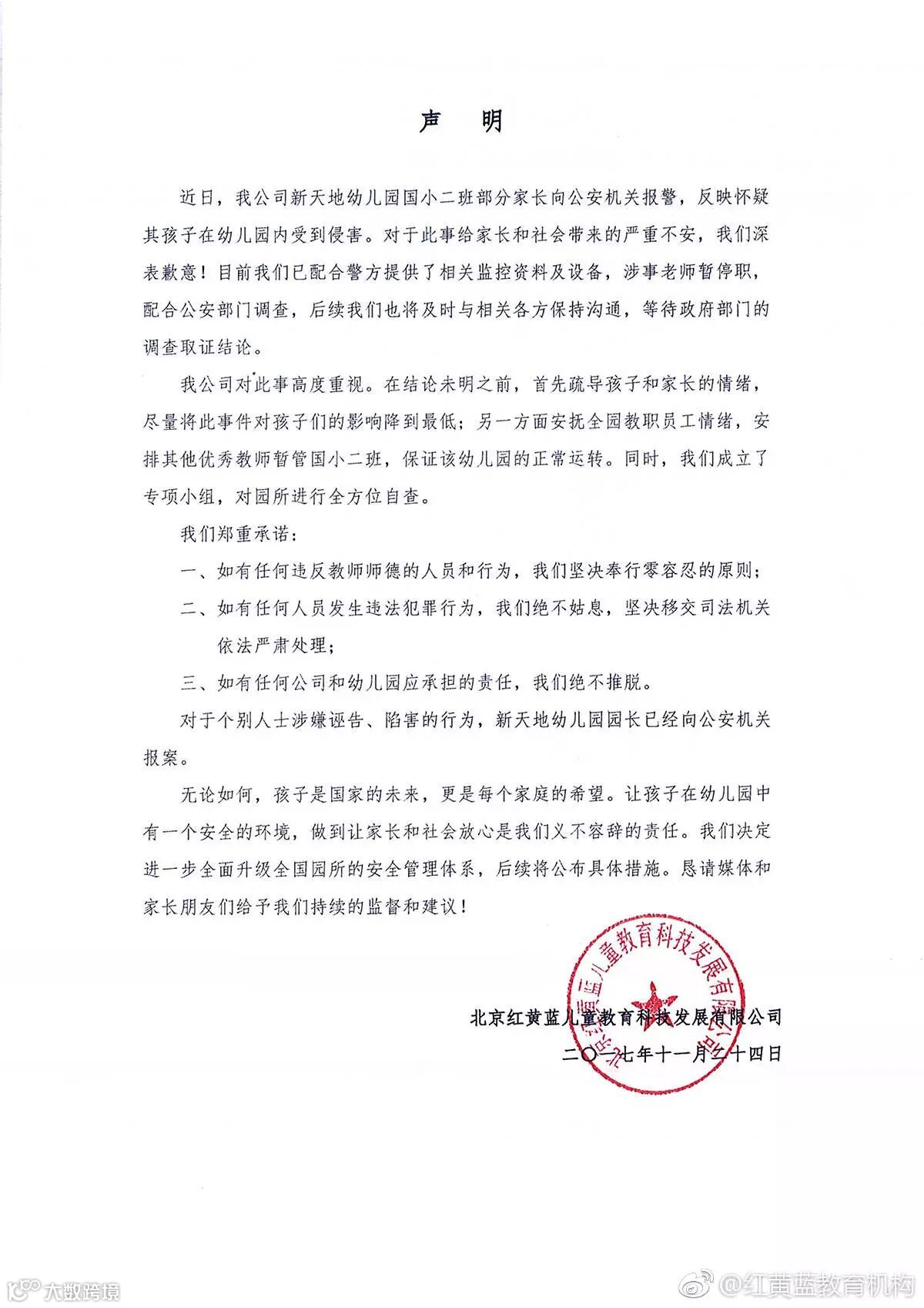 目前最新的消息,幼儿园已发表声明,表示正在配合警方调查。