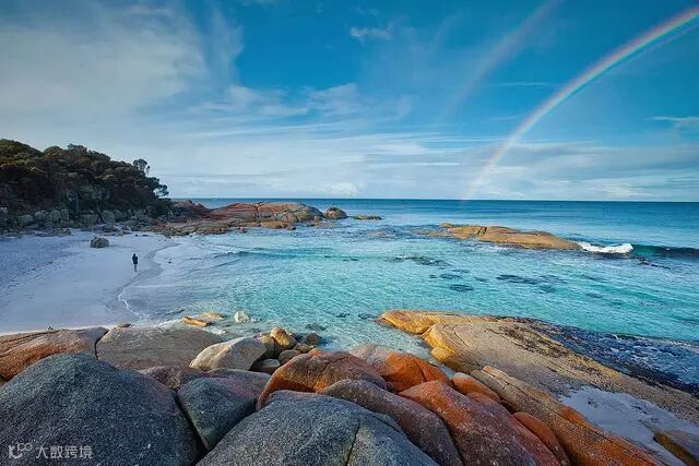 海水的蔚藍與紅得像著火般的火焰灣(Bay of Fires)岩石撞色,成了塔州最特別的一抹顏色。