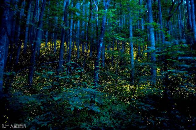 整片海域泛著藍色銀光,與星辰閃耀的夜空遙相呼應。