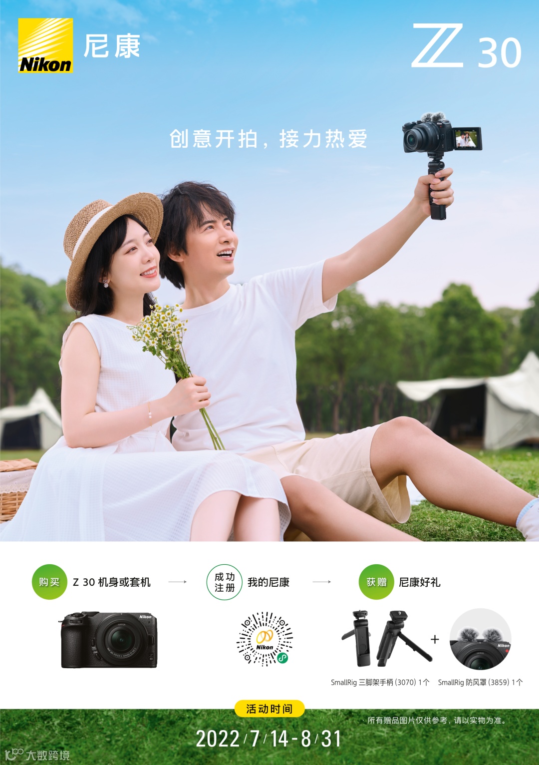尼康同时宣布于7月14日至8月31日开启新品开售送好礼活动。活动期间,凡购买尼康Z 30机身或套机,并成功注册“我的尼康”的用户,即可获赠好礼(SmallRig三脚架手柄3070一个+SmallRig防风罩3859一个)。