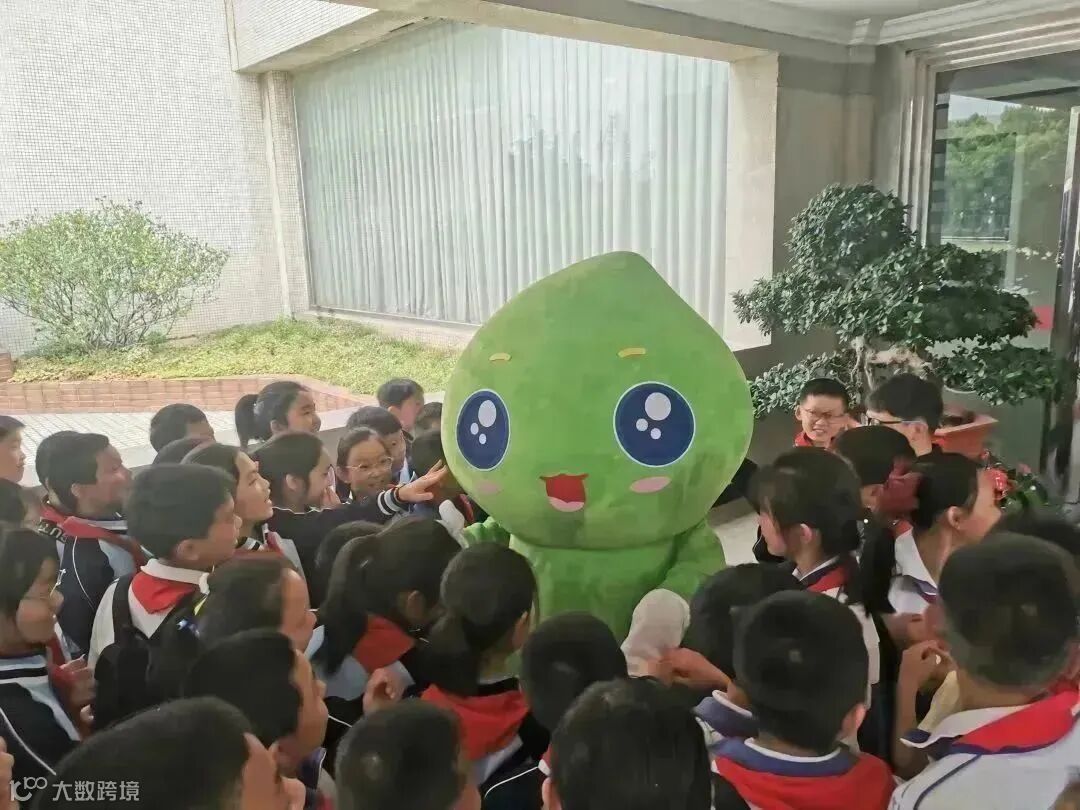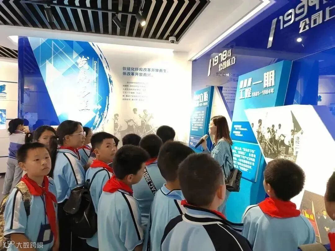 最后一站,同学们来到仪化公司建设发展综合馆。在综合馆门口,可爱的油迪向他们招着手,欢迎他们的到来,同学们争先恐后与油迪握手合影。