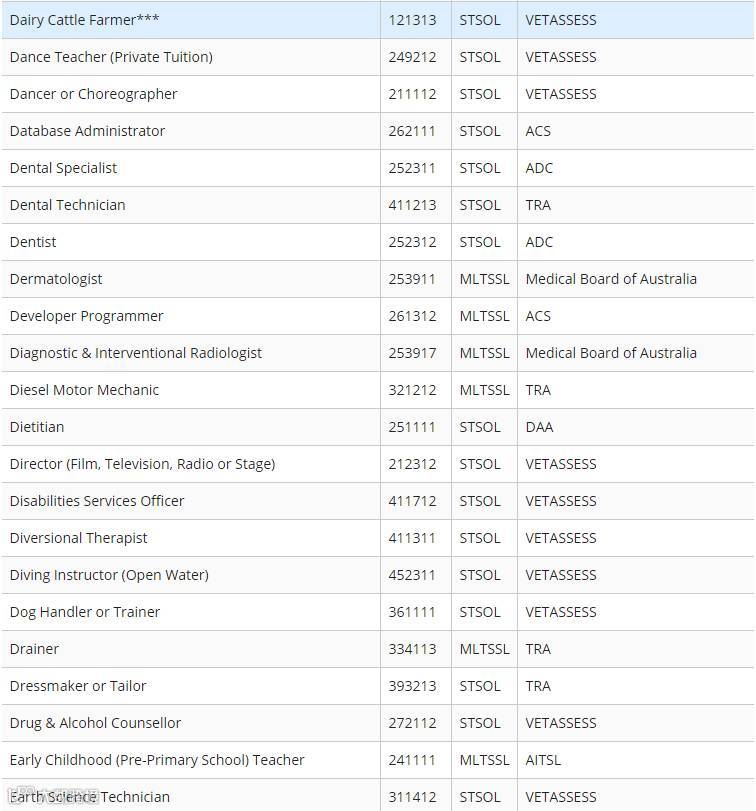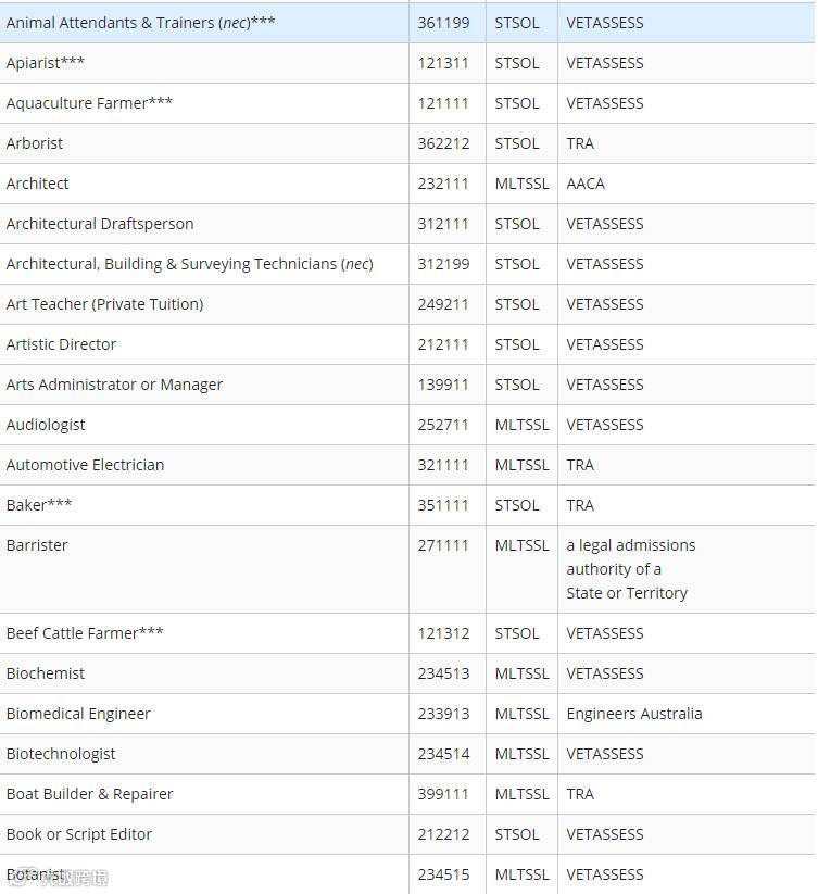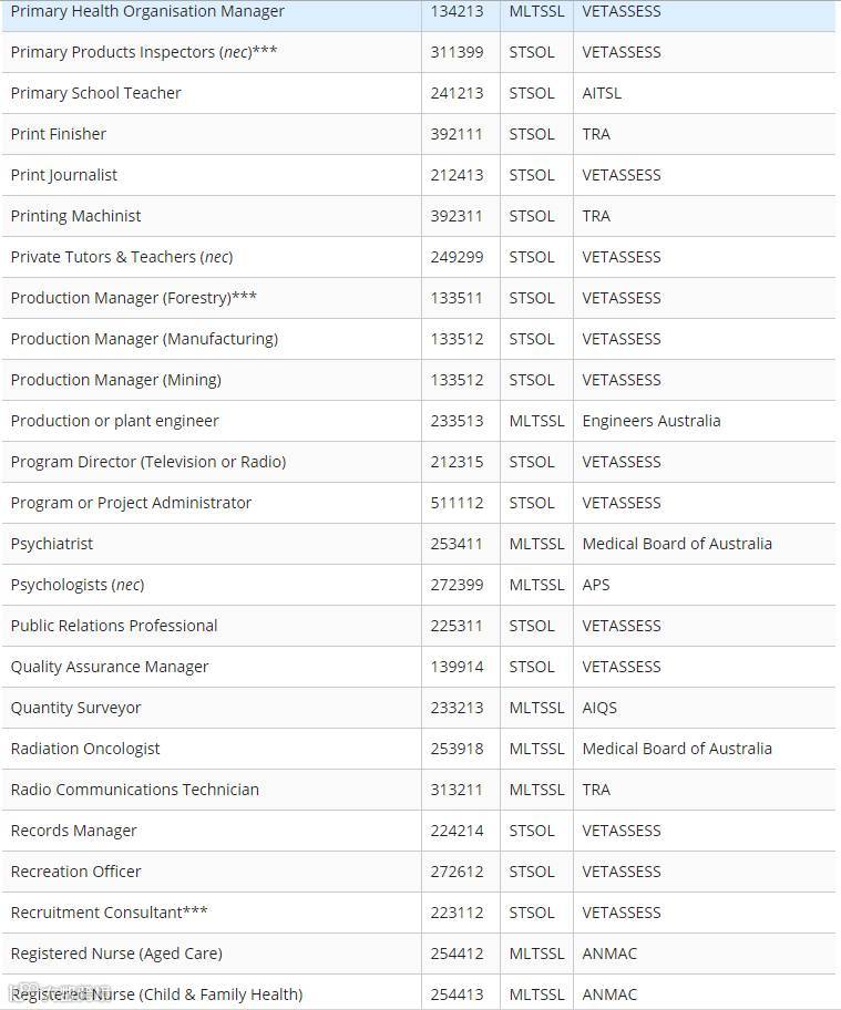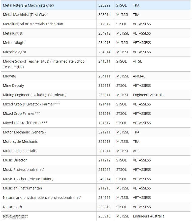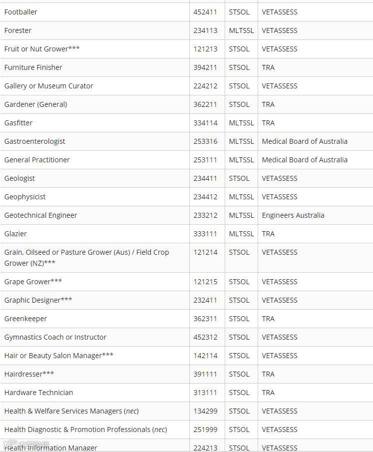 下面小编为大家附上最新职业列表清单(STSOL和MLTSSL)