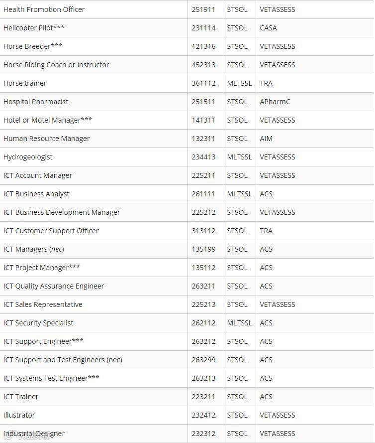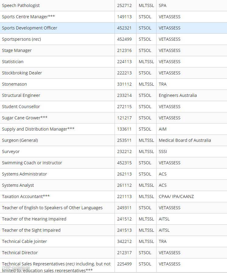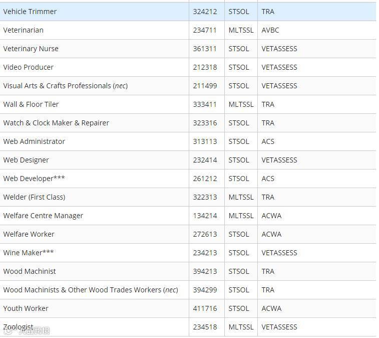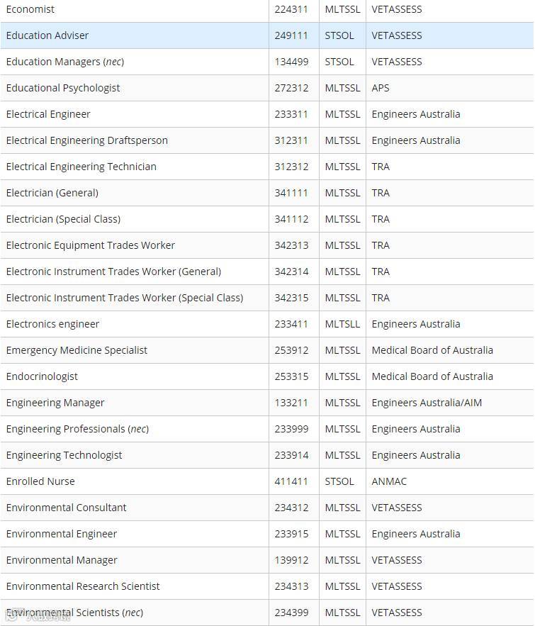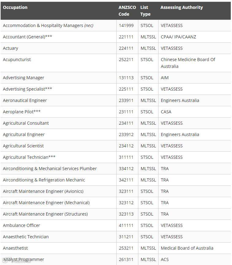 下面小编为大家附上最新职业列表清单(STSOL和MLTSSL)