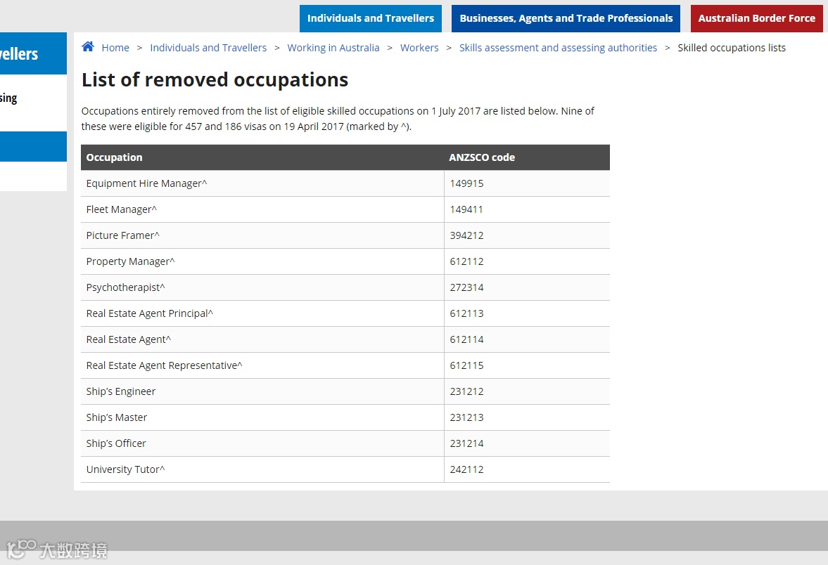 同时,一些职业例如心理治疗师、房地产经纪人、房地产代理代表和船舶工程师等12个职业也从移民职业清单中移除了。(详情请见下表)