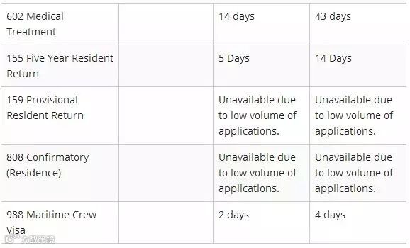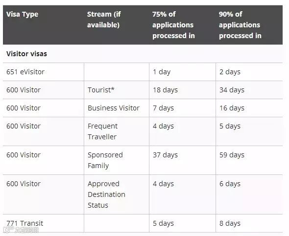 从2017年3月以来,澳大利亚移民局开放了自助签证时长查询。截止今天,2017年5月30号,移民局签证时长公布如下: