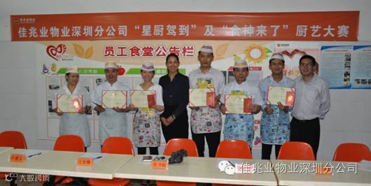 为不断提高各项目员工饮食服务质量,进一步推动企业文化建设,丰富员工业余生活,深圳分公司落实贯彻佳兆业物业集团“服务·美丽中国”——美丽员工篇工作。于10月19日,由行政及人力资源部组织,在桂芳园项目员工食堂开展了一场以“星厨驾到,食神来了”为主题的厨艺大比武活动。