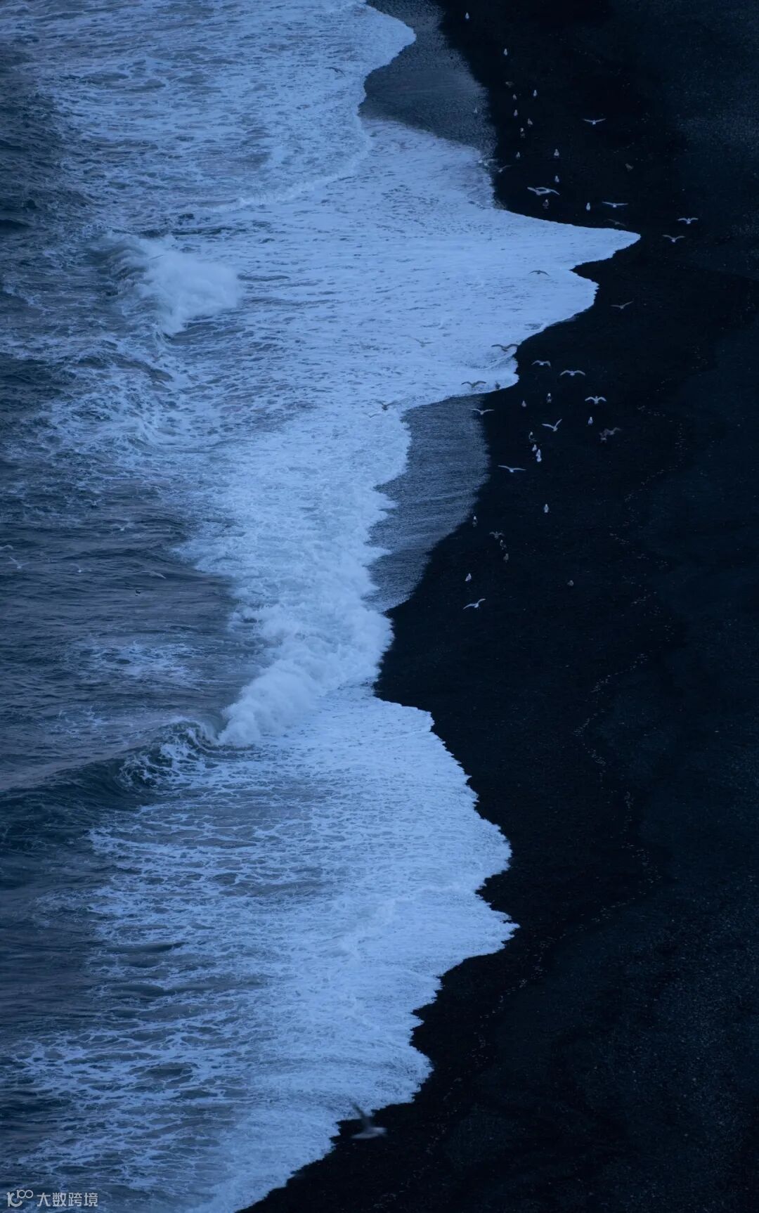 这是在一个很高的地方,底下是冰岛的一个黑沙滩。因为要使用到长焦镜头去拍摄,而太阳刚出来的时候,光线并不是很强,长焦镜头的焦段会异常,需要配合1.4倍的增倍镜去拍,这种情况有可能这个快门速度不够,那么就要使用三脚架去拍摄了。
