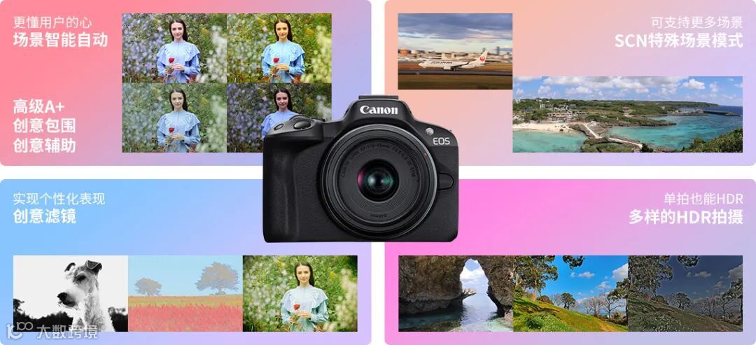 除了以往型号中的“创意辅助”模式外,EOS R50还新增了“创意包围”“高级A+”两种新模式,帮助提供照片创作的更多灵感与趣味。