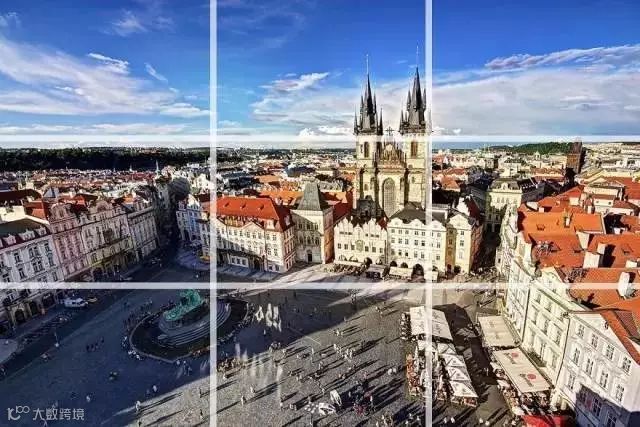 将整个画面像下图这样用分成九等分网格形式,很多相机本身自带网格显示的功能。这个方法主要是为了将皂片中重要的元素放置于一条或多条线或线条交叉处。