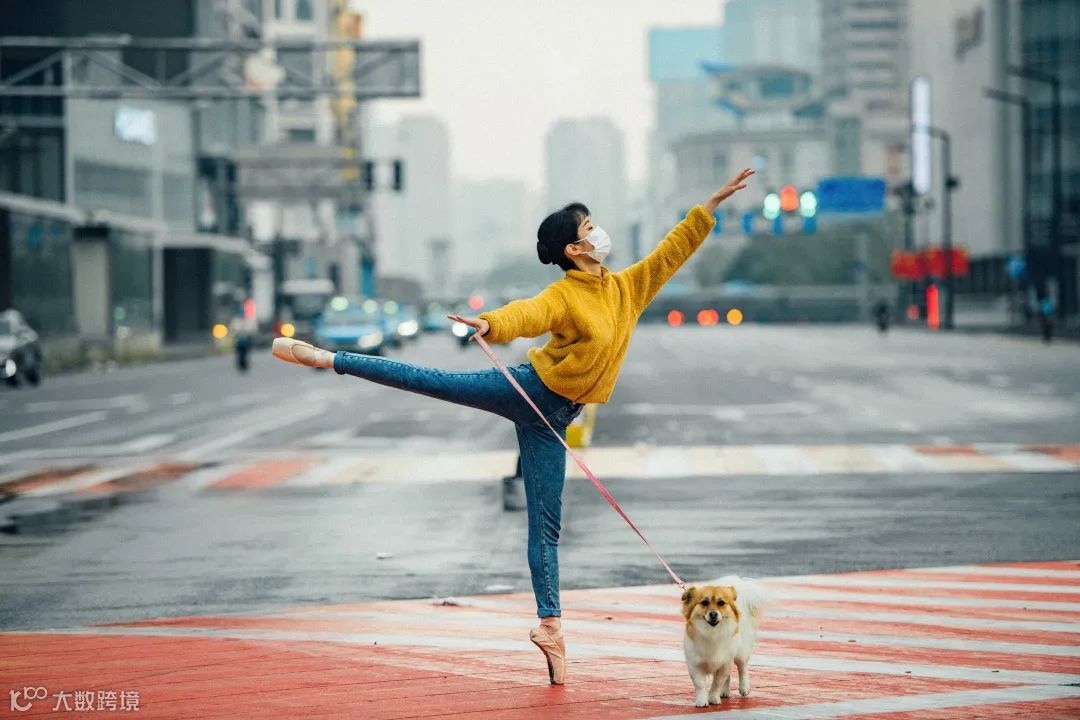 这组拍摄邀请的是一位芭蕾老师担任模特,全天一共有三只狗参与拍摄,其中出镜最多的便是模特自己的宠物,即便如此,由于拍摄时间过长,气温炎热,导致拍摄的后半段,狗狗已全程不听使唤,怎么引导都无效了。此次拍摄全程让模特佩戴口罩,这样疫情的典型元素就一目了然了。