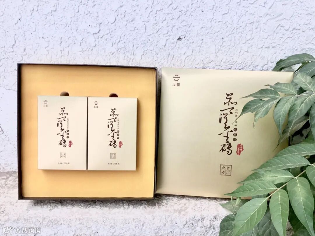 精选普洱核心产区的优质晒青毛茶为原料,经5年以上的干仓贮存与转化,于2021年压制而成,汤色金黄,回甘生津快,经久耐泡,唇齿留香,两片装金砖凸显大气。