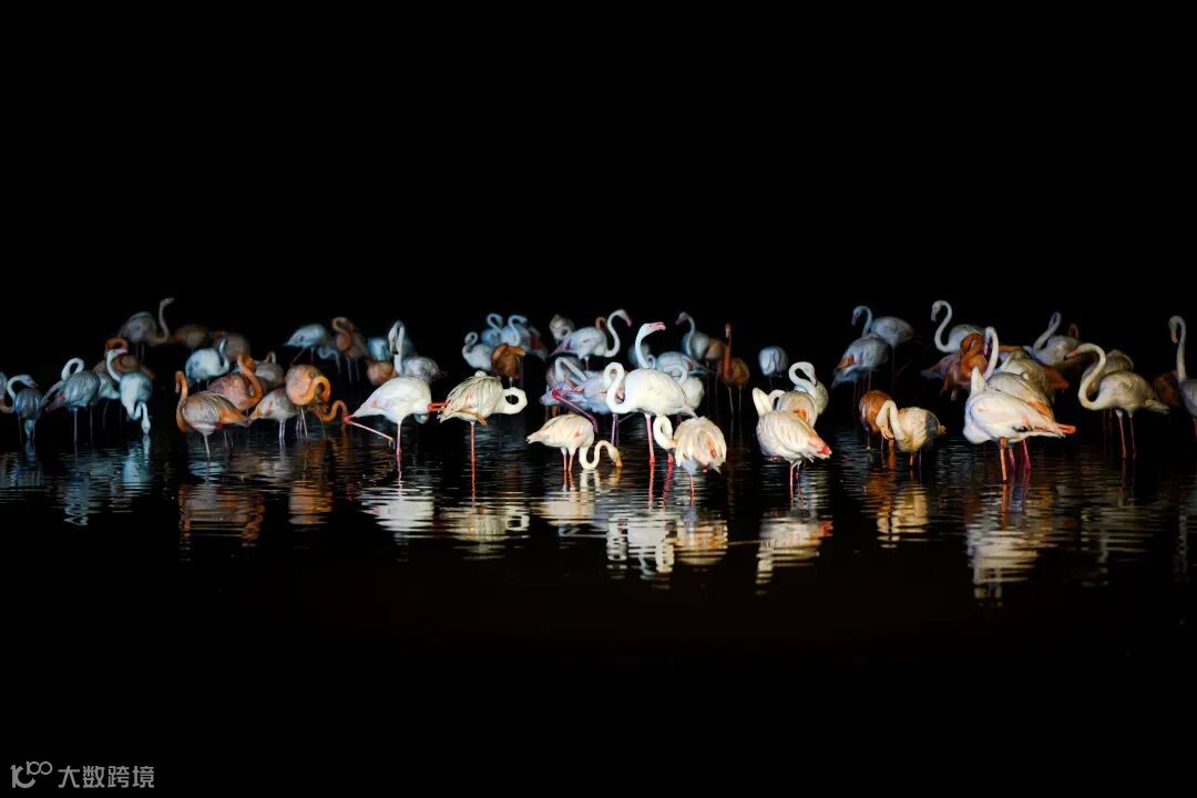 在动物园里,很少看见这么多火烈鸟聚集在一起的场景。这张照片拍摄于晚上,由于天色已黑,只能靠灯光打亮时,才能拍摄出背景为黑色的画面。动物园里的火烈鸟也是很好的拍摄对象。它们移动的频率和速度都相对较慢,可以有足够的时间来对焦和构图。使用尼康Z 7的高感光度进行拍摄,画面依旧可以获得纯净的效果。