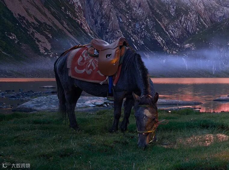 完成这张照片需要精准的时间控制、光线预判,同时还需要肖像级的灯光辅助,包括篝火、环境光、灯光的色温平衡等等。