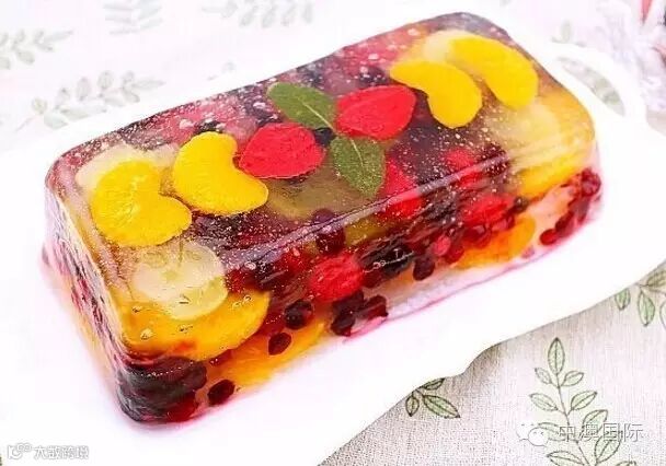 ❹ 一层结冻后再放入一层水果,倒入适量果冻液,冻上后再加一点将果肉覆盖,再冻住才能添加第二层果肉。