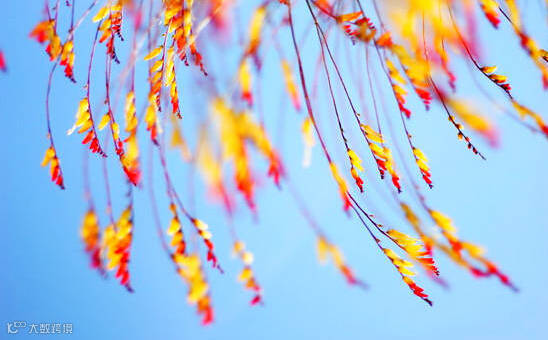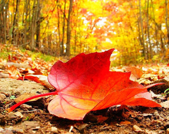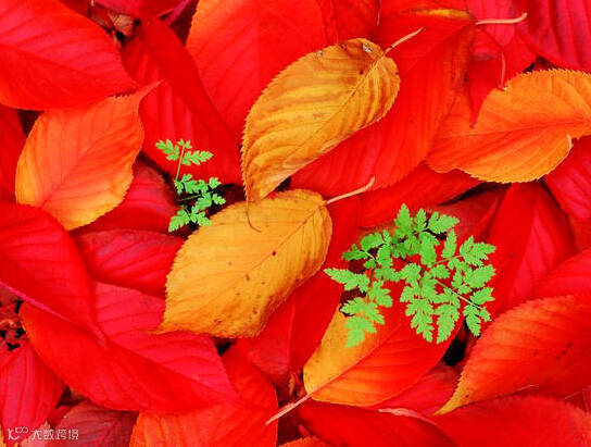 为避免喧宾夺主,削弱对红叶主体的表现力,搭配的颜色应该柔和平淡色彩,通常黄色、绿色、白色或淡粉色等颜色都能够与红叶形成很好的搭配效果。