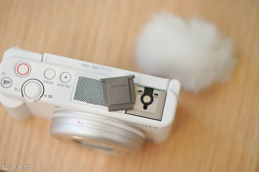 这个白色毛茸茸的“帽子“是索尼ZV-1随机配备的防风罩配件,该配件安装在MI多功能热靴接口上,可以减少风噪,让你在户外拍摄时免受风噪困扰,实现更高收声质量。